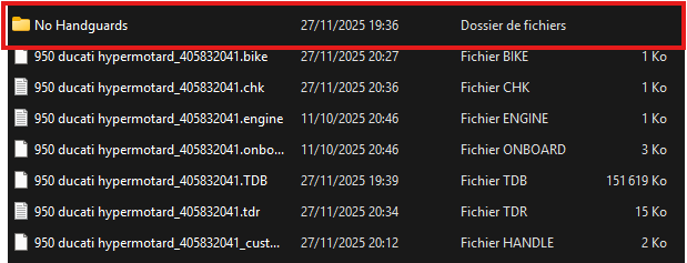 Open.zip file Drag & drop the "950 Ducati Hypermotard" folder into MyDocuments\Trackdayr\bikes